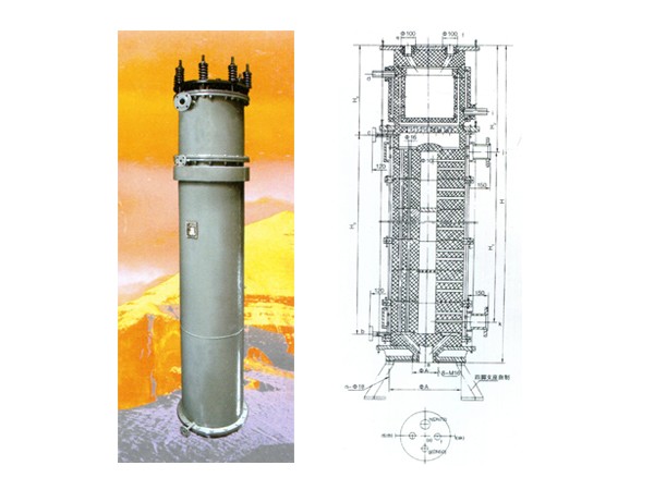 主要用于硫酸鉀生產系統,成功替代了進口設備。該設備要求頂部零部件耐溫540度左右,下部為多節式組合,介質經多次再分配冷卻、吸收,介質出口溫度55度左右。設備整體全部采用石墨材料。我公司經特殊處理,成功解決了設備耐高溫、雙向耐腐蝕等諸多技術難題,技術水平為國內行業之最。